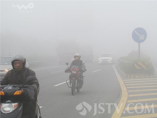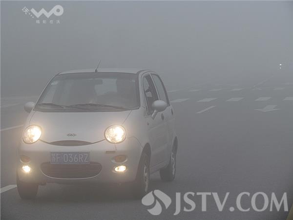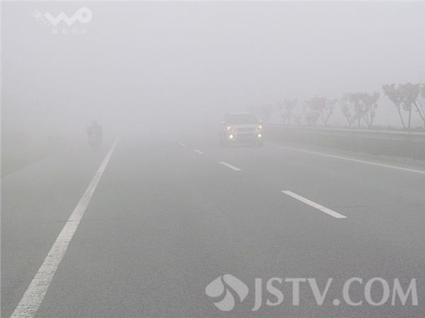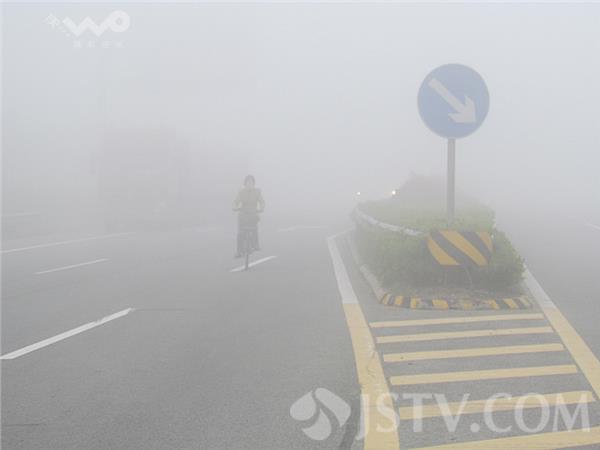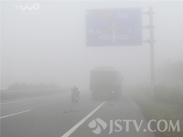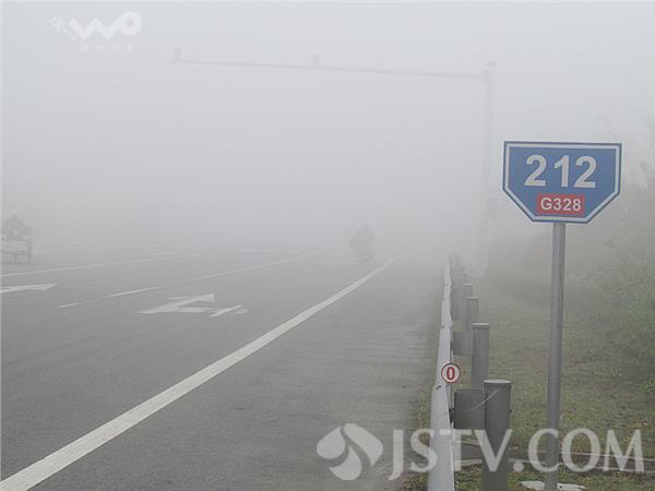 今天(4月14日)清晨,苏北南通海安境内上空就弥散着一股浓雾,大雾稠密,能见度约50-60米左右,路过的车辆纷纷打开防雾灯减速通行,