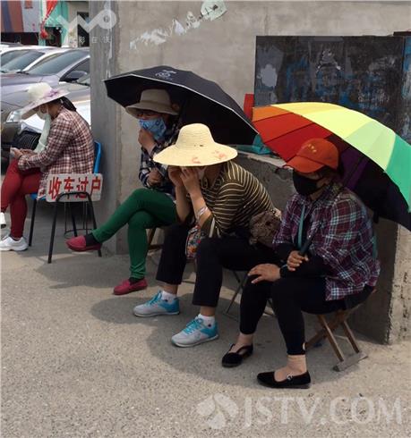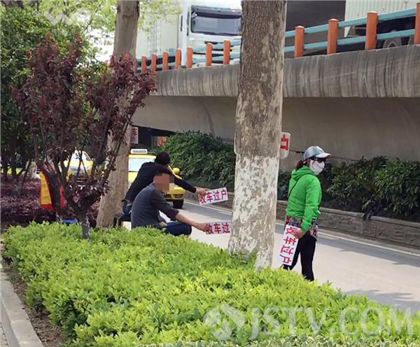 14日下午1时许,荔枝新闻通讯员在南京双龙大道与大明路路口,看到十几个打扮很特别的大妈,整个身体包裹的严严实实,头戴鸭舌帽,面戴墨镜和大口罩像个蒙面人,几乎看不到一点脸和皮肤,只要一看到汽车经过就迎上车去,举牌拦车“卖车吗?”司机们都摇摇头:“不卖”。