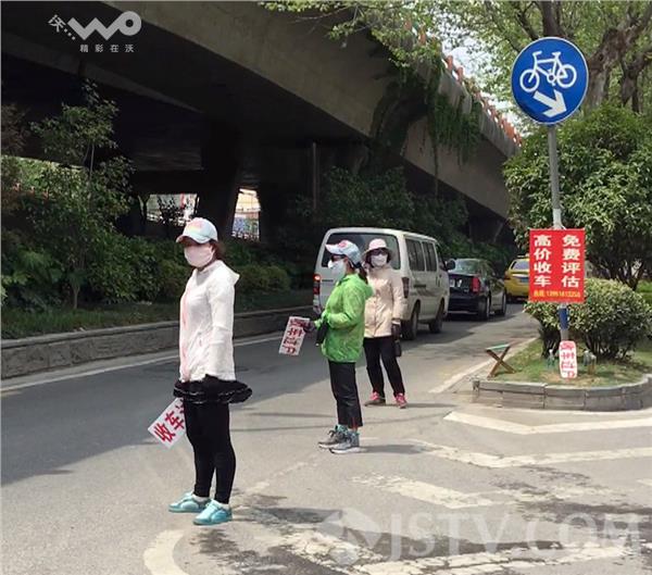 在这条路段,“收车过户”“ 高价收车”“ 免费评估”等字牌,有的挂在醒目的指路牌下,有的拿在大妈手上,面对大妈们的拦车行为,行经此处的汽车纷纷减速,常常惊出一身冷汗。希望有关部门加强管理。