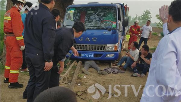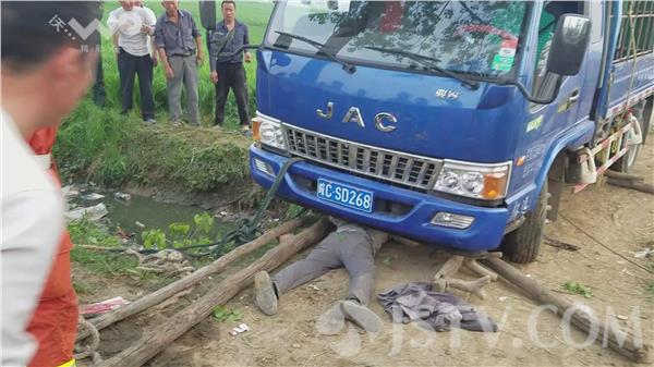 消防官兵到场后,发现一辆农用货车右前轮陷在路边沟渠中,驾驶员腰部以上被车头埋压,腿部露在车外,情况万分紧急。消防官兵迅速制定救援方案,为防止发生意外,对被困驾驶员造成二次伤害,在详细询问被困人员身体情况后,指挥员现场联系调集一辆挖掘机到场配合救援。挖掘机到场后,消防官兵利用抢险救援车的牵引钢丝绳配合挖掘机调臂进行操作,增大救援空间后,迅速将驾驶员救出,第一时间交给现场医务人员。经询问知情人得知,由于田地中道路较窄,货车右前轮陷入土地中,驾驶员爬到车底利用千斤顶将轮胎抬高,在操作过程中,由于对道路观察不仔细,千斤顶发生偏移,造成车辆下陷,驾驶员被困车底,不能动弹。在这里,消防官兵提醒大家,在进行类似操作中,一定要仔细观察周围环境和作业条件,最好两人配合,防止发生意外。