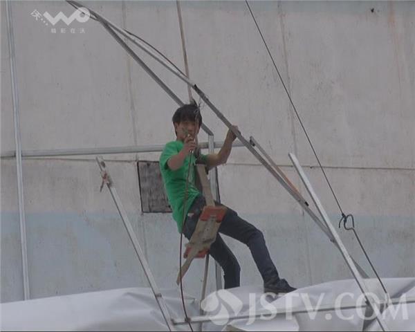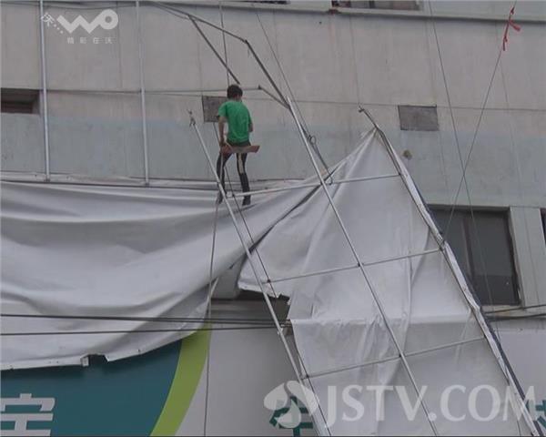由于刮落的广告牌连着钢筋,如果强行把它拉下,势必会刮断高压线,经过消防队员的出谋划策,找来广告公司的专业人员,爬上楼顶放下绳索,蜘蛛侠很快降落到位置,剪断了钢筋,把广告牌顺利安全取下,排除了隐患,装饰城表示会对所有的户外广告牌进行检查加固。