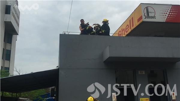 今天下午2点45左右,苏州新庄某加油站内突然来了多辆消防车,然而并不是起火,消防员是来救人的。