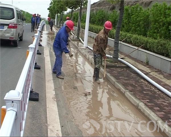 今天(4月17日)上午,在南京雨花台区绕城公路铁心桥服务区附近,有一家正在施工的单位将泥浆直接排到了马路上。大量的泥浆不仅污染了路面,还流进了下水道,长约一公里的人行道和慢车道全被污染,行人只能沿着路边的绿化路牙缓慢行走。据了解,这些泥浆来自附近正在铺设燃气管道的施工工地,之前,他们一方面通过大型车辆将这些泥浆运往指定地点,另一方面通过塑料管道输送到工地在附近设立的三个泥浆沉淀池。不料,今天上午,塑料管道发生了爆裂。随后,雨花台区城管执法大队工作人员赶到现场,要求施工单位立即停止泥浆排放,冲洗干净路面,第二天到大队接受处理。
