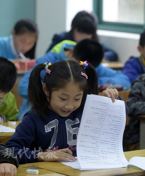 上午9点,常州市博爱小学五(2)班的胡晓欣早早从家出发,赶到南京市长江路小学参加比赛。胡晓欣的妈妈说,以前晓欣从电视上收看“汉字听写大会”,这次从现代快报上看到参赛报名,“孩子特别感兴趣,一定要来试试看。”