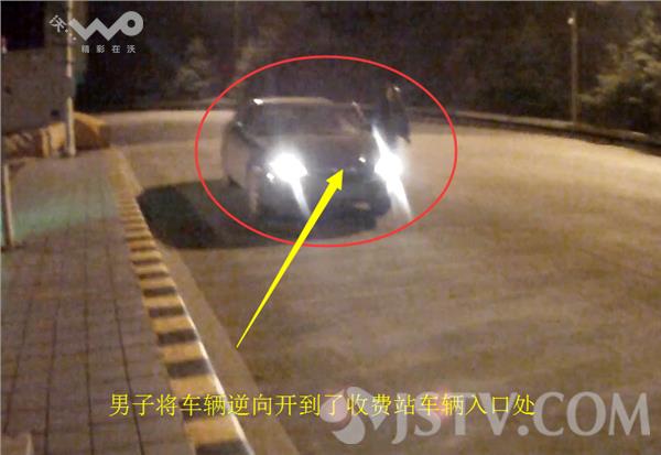 那么这辆车是如何从高速上逆行开到收费站的呢?民警调取高速公路匝道的监控录像,发现了该车辆逆行从高速上下来的全过程。