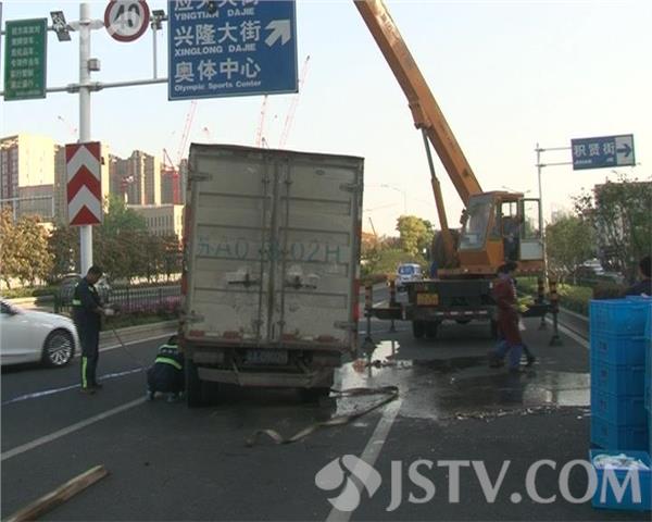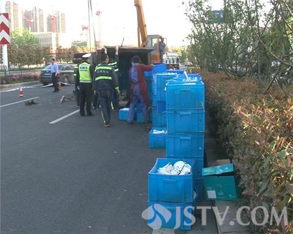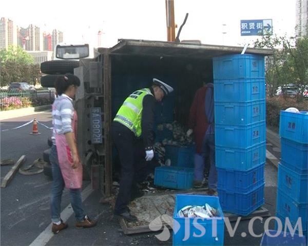 昨天(4月18日)晚高峰的时候,一辆货车在南京市建邺区江东中路发生侧翻,为了保障路面畅通,交警迅速展开了清障工作。