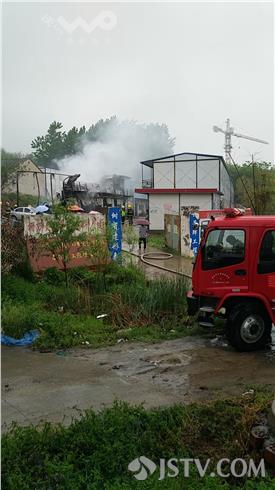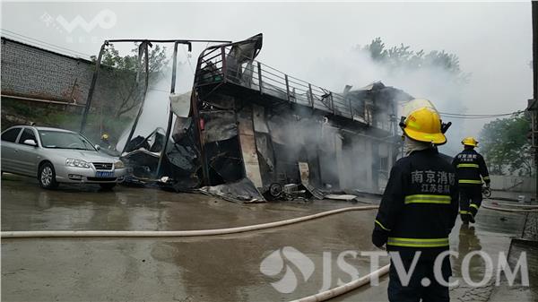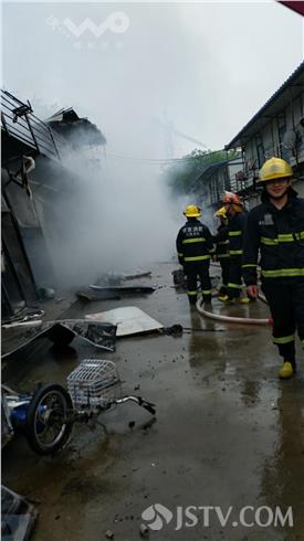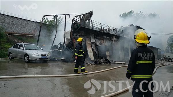 南京消防接警之后迅速赶到现场,接水灭火,很快明火被扑灭。但是由于燃烧的简易房内堆放的易燃物太多,消防战士一直在现场处理冒着浓烟的现场,经过半个小时清理,现场才清理完毕。