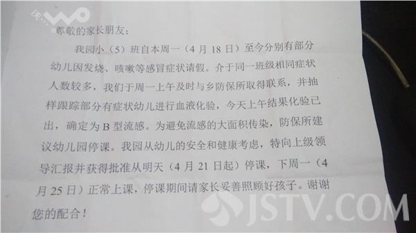 因为同一班级同一天有27名幼儿感染B型流感,淮安市淮安区某幼儿园被迫停课四天。