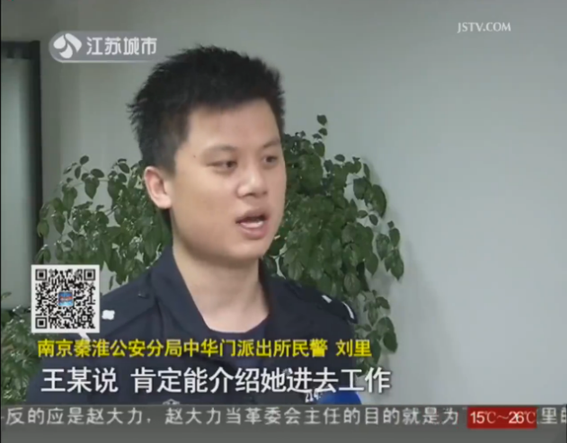 王某和陈家人通话用电话样板,部分开小窗配画面或者直接配画面 受害人小陈是南京某中专院校的学生,2013年,小陈通过同学小王爸爸王某的关系进入某传媒单位实习。2014年,小陈即将面临毕业,王某透露他有能力可以让小陈正式进入这家单位工作。 小陈的家人很快给了王某2万多元,几天后,王某回复,已经为小陈的工作找到了关系,但这之后就迟迟没有下文。因为是求人办事,起初小陈的家人也没好过多的催促。几个月后,小陈开始着急起来,可是每次询问,王某都在拖。 然后又是石沉大海。在下面这段录音中,为拖延时间王某又用起了苦情计。 到今年年初,王某以各种理由从小陈家人手里拿走了11万多元。而眼见小陈毕业已经有段时间了,工作依然没有落实,小陈一家也着急起来,不断催促王某。王某开始不接电话,最后就联系不上了。小陈这才感觉被骗,报了警。 经过多方调查,警方发现,王某其实是无业人员,2013年就因为涉嫌诈骗130多万元被安徽警方列为网上追逃人员。4月初,警方赶赴淮安将逃到这里的王某抓获。王某交代,自己被安徽警方追逃后,伪造了假的身份逃到南京。他最初是通过朋友关系将小陈介绍到单位实习,见小陈有想留下工作的意愿,便谎称有门路随即实施诈骗。目前,王某因涉嫌诈骗被刑事拘留。江苏城市频道为您报道。