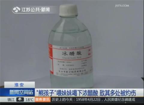 近日,淮安市第一人民医院收治了一名因误服高纯度醋酸导致口腔、皮肤等多处灼伤的3岁女童,这一切竟然是因为女童的哥哥把装在饮料瓶里的醋酸喂给了妹妹喝。