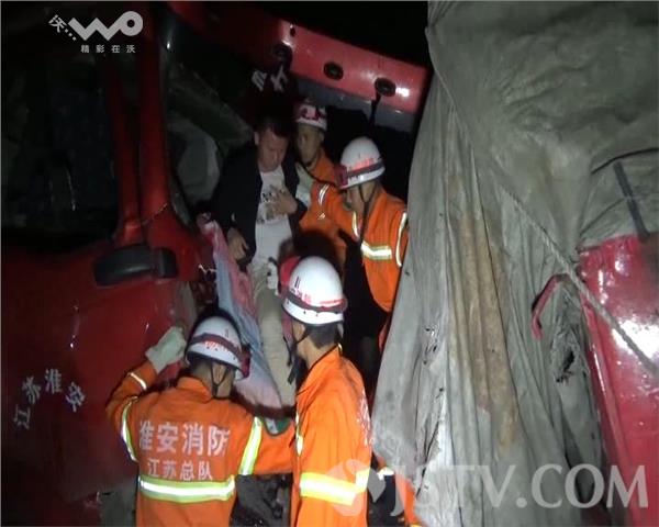 4月24日凌晨3时许,江苏新237省道淮安市淮安区上河段发生一起三辆大货车追尾,事故造成最后一辆大货车两人受伤被困。当地公安、消防、急救等部门接到报警后,迅速赶赴事故现场实施救援。