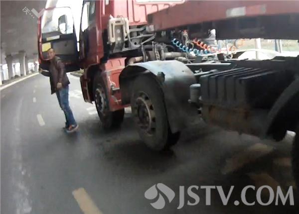 昨天(4月25日)下午傍晚6点多钟,徐州泉山交警在三环西路对涉嫌闯禁区的这辆大货车例行检查时,发现司机身上一股酒味,驾驶员却矢口否认自己喝了酒,说是车上的货主喝的酒。