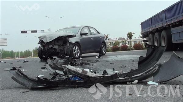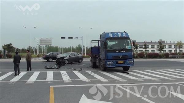 4月26日上午十点多钟,在省道S329射阳县经济开发区台资产业园十字路口,一辆由东向西直行的小轿车与一辆由西向北拐弯的车辆发生碰撞,事故造成小轿车损毁严重,所幸小轿车驾驶员佩戴了安全带仅受了一点擦伤。