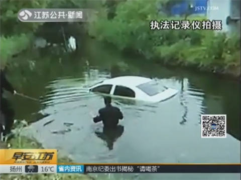 民警赶到现场时,只有车顶还露在水面,打开车门后,发现驾驶员已经不在车里了。