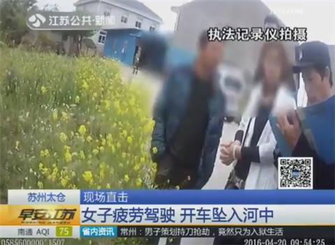 太仓璜泾交警中队民警余云超介绍到,据当事人反映,当时她是上完夜班开车回家,人比较疲乏,在经过事发路段的时候,因驾驶操作不慎,汽车坠入河中。