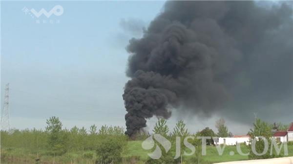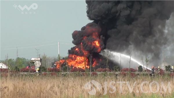在起火货车的上方就是110KV的兴金输电线,射阳县供电公司输电线路运检班的工作人员赶到现场后切断输电线路,防止消防官在灭火时水龙喷到输电线路发生危险,并在现场等待灭火之后评估大火对线路的影响,恢复输电。