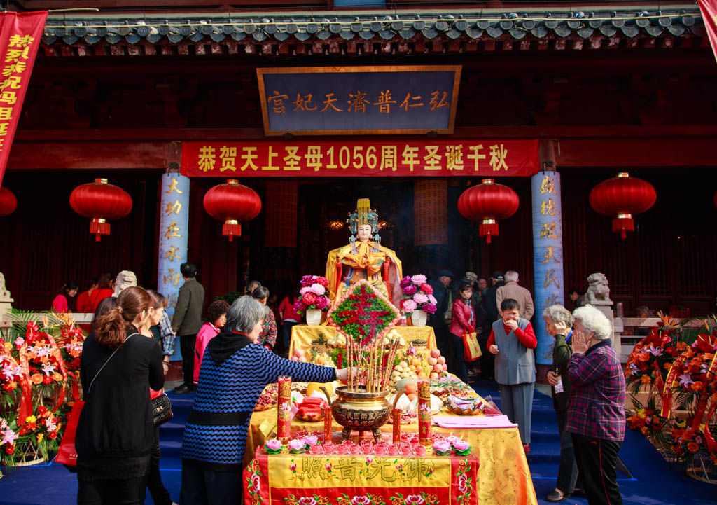 “三月二十三,乌龟爬下关”是许多老南京耳熟能详的一句谚语,讲述的是每年农历三月二十三妈祖诞辰纪念日,在下关静海寺、天妃宫门前的场地上因祭祀天妃娘娘、祈求平安,由广大市民自发形成的庙会。1937年天妃宫因战火被毁,这一民俗活动逐渐销声匿迹。妈祖文化庙会于2005年恢复,已吸引百万市民、游客参加。