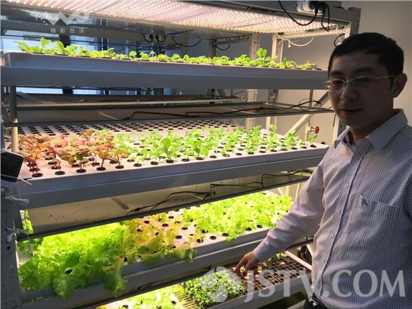 4月29日上午,记者来到了南京市大数据产业基地,终于得以见到这一“神器”的真容。据了解,这款“柜子”学名叫作家居蔬氧柜,外型精致,与一般的柜子无恙,只不过透明的玻璃里分了好几层,上上下下种满了各种各样的蔬菜,同时,柜子上方也照射着暖色调的光线,好让植物通过光线进行光合作用,以此达到吸收空气中的二氧化碳,净化家居空气的效果。