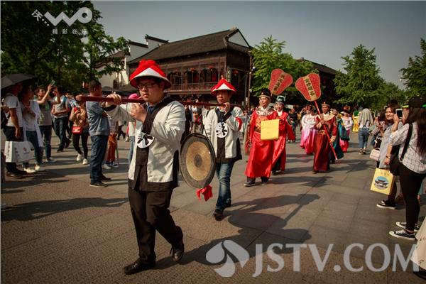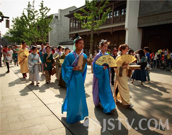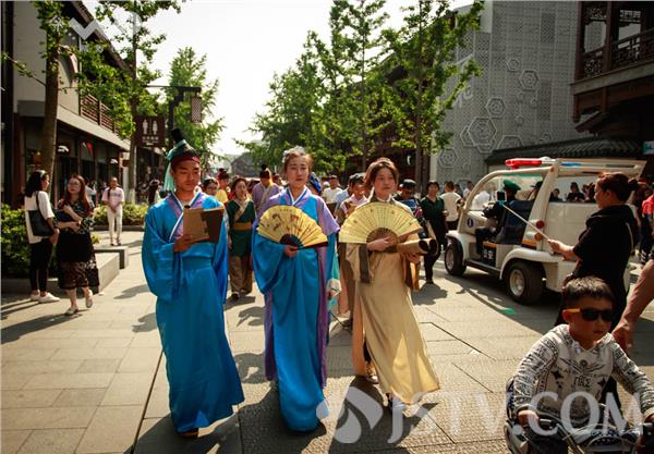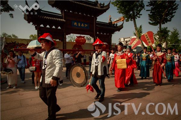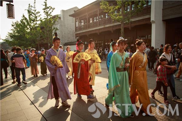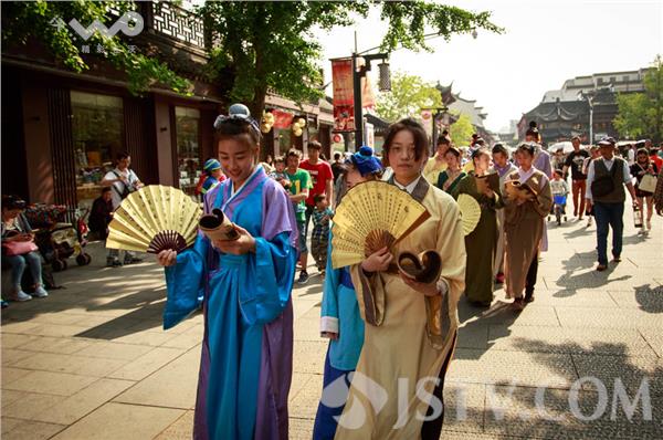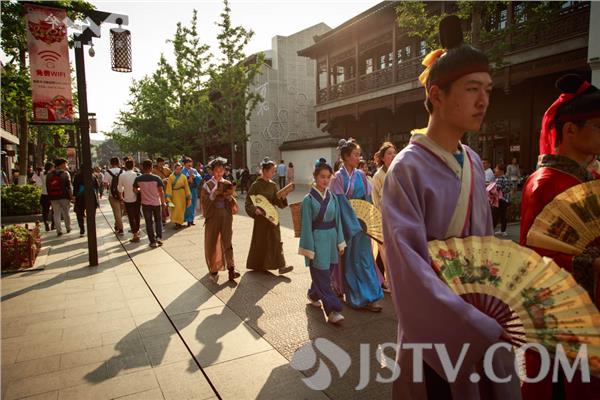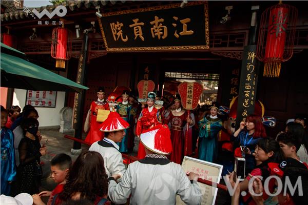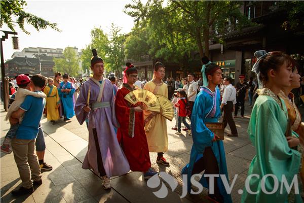 “五一”小长假,南京夫子庙趣味多多,各种文艺节目丰富多彩。4月30日下午3时许,笔者在夫子庙游玩看到,贡院街密密麻麻游客如潮,人流中突然出现一群“古人”,他们三五成群,身穿古代各色长袍,一手拿折扇,一手拿书,低着头边走边读,像似古代前来江南贡院赶考的学生;时隔半小时,紧接着又听到敲锣打鼓声,一位胸戴红花,金榜题名的状元郎开始游街,好不热闹,不少游客追着围观看稀奇。原来这是夫子庙景区“五一”期间,特意安排的民俗表演,他们从北门走到南门,一天来回走十多趟,游客们不仅可以感受“穿越”乐趣,还可以在大照壁前的龙船上欣赏精彩的文艺表演。金粉楼台,桨声灯影,游走在夫了庙的大街上,仿佛回到了几百年前如梦如幻的秦淮河。