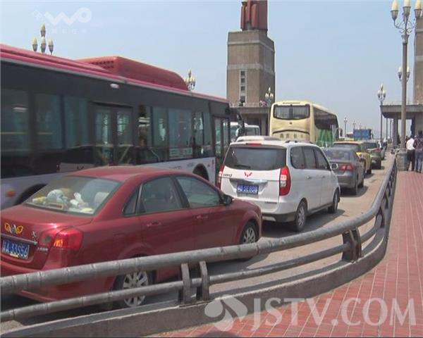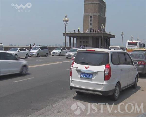 在长江大桥南堡两侧的应急车道上,停满了近20辆轿车,来自外地的私家车辆占了一半,来往车辆通过这里减速慢行,严重地影响了长江大桥的通行能力,交警九大队民警赶到现场,对违停车辆进行了罚款100元记三分的处罚