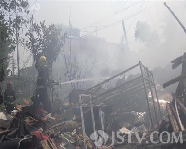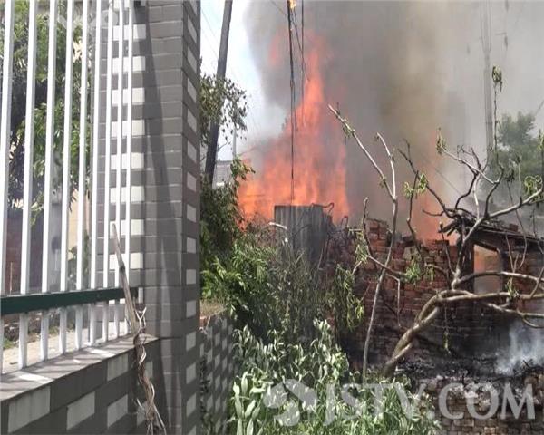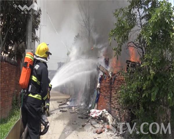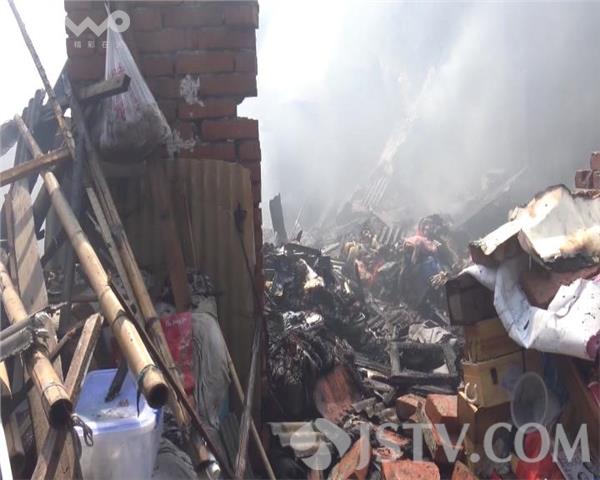 5月1日中午12点左右,扬州市江都区境内,一家废品收购站突然起火,浓烟滚滚,火势汹涌,情况紧急。当地公安、消防部门接到报警,立即前往现场扑救。起火的是一家用砖块临时搭建的废品收购站,浓烟滚滚,火焰窜的四米多高,不时传出噼里啪啦的响声,而不远处就是一栋楼房,附近堆积了大量的可燃物,一旦火势蔓延,后果不堪设想。消防队员赶到,迅速铺好水管,堵截火势。由于起火点在屋内,消防队员在背面打不到火势。经过现场勘查,消防队员翻过围墙,从收购站正面打击火势。