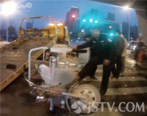 在交警对其检查过程中,一名男子告诉交警他们是在附近工地干活的工人,请求民警照顾一下。民警首先指出他们的违法行为,电动三轮车本来就禁止在三环路行驶,而且这次还载满了民工,在快车道行驶,按照规定应当暂扣车辆。