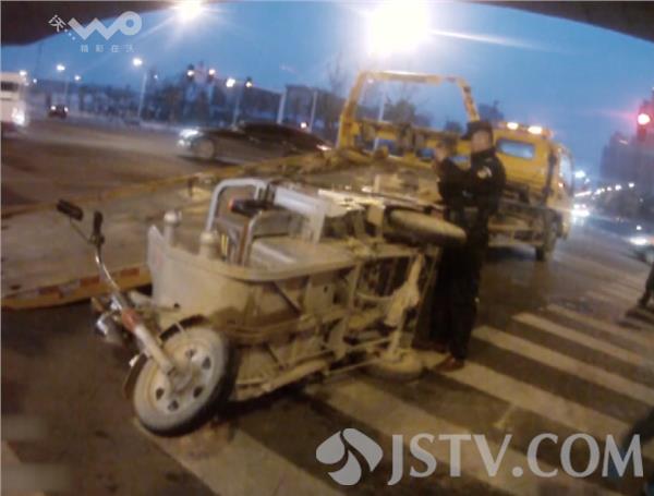 正当民警准备对其车辆进行暂扣时,三轮车驾驶员和其他几名工人跟交警纠缠,言谈间有一名民工竟与民警拉扯起来,把民警把执法记录仪碰掉,拉扯过程中一名体态稍胖的男子竟然把三轮车掀翻。