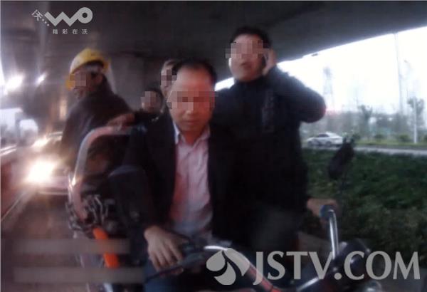 荔枝新闻5月2日讯,昨天傍晚,徐州泉山交警在三环西路高架桥下查处一辆满载工人的电动三轮车,三轮车不仅走快车道、超员,在民警依法查扣后车上人员竟然拒不配合,与交警发生冲突后一名男子将三轮车掀翻在地,最终,几名男子被强制传唤至派出所。