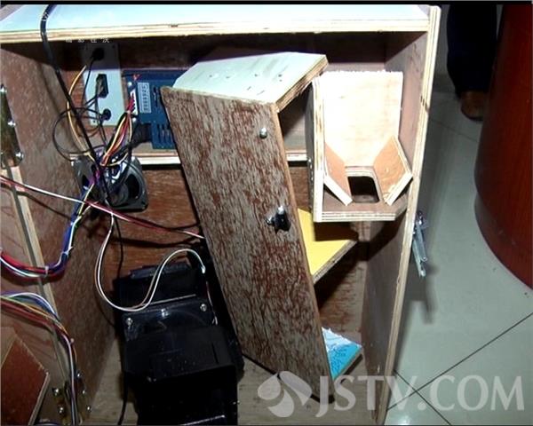 在派出所,肖某坐在椅子上,身上还有不少伤痕,旁边的赌博机已经被砸烂。