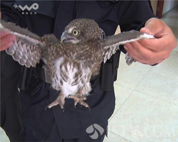 今天(5月3日)上午10点左右,一位热心市民把一只出生不到一个月的猫头鹰送到南京鼓楼公安分局三牌楼警务站。据他介绍,这是他上午在山西路青春剧场附近的林荫道上捡到的,估计是昨夜的大风将它从树上吹落。随后,民警开着警车将这只猫头鹰送到了红山动物园野生动物中心。一位姓周的工作人员接收之后表示,她们将对这只猫头鹰进行检查,如果没有患病,将喂养一段时间后放飞大自然。同时,这位工作人员对热心市民和民警的爱心接力表示感谢。