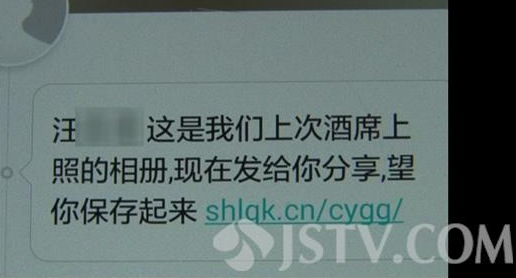 前天晚上,江苏淮安市民汪先生手机收到一条171开头的陌生号码发来的信息,'汪某某,这是我们上次酒席上照的相册,现在发给你分享,望你保存起来'。因为短信称呼非常亲切,汪先生便回忆起了4月30号的一场朋友聚会。