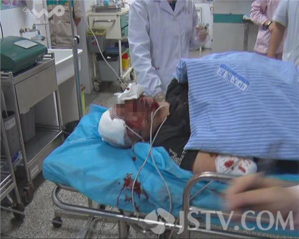(5月3日)昨天傍晚六点钟左右,在城北上元门地铁站附近,一辆白色宝马车将一名骑电瓶车的中年男子撞飞,中年男子当场倒地头部流血,被120救护车送往东大医院救治。据目击者讲当时中年男子骑着电瓶车过马路,这时一辆由西向东的白色宝马车车速过快,将男子撞飞二十多米远,电瓶车解体,地上到处是散落的碎片,地上留有一大摊鲜血,宝马车挡风玻璃上被撞出一个大洞,伤者被120送往医院救治。六大队交警称,在现场没有发现宝马车急刹车的痕迹,说明车速度过快,因为这里斑马线没有红绿灯,宝马车驾驶员应当减速观望。在东大医院记者见到了伤者,由于头部颅内出血,生命垂危,医生正在抢救。