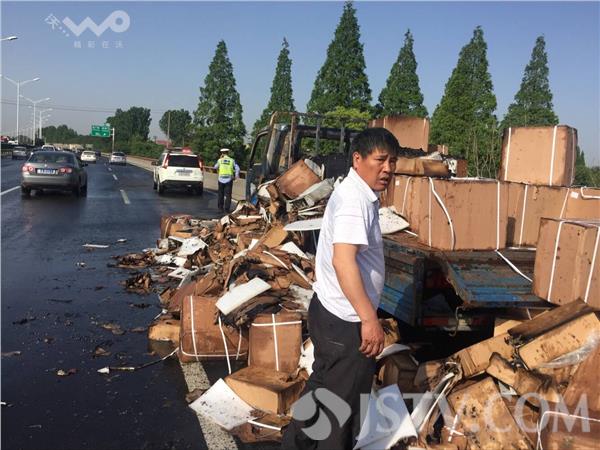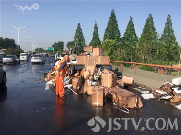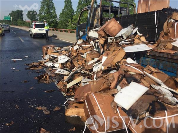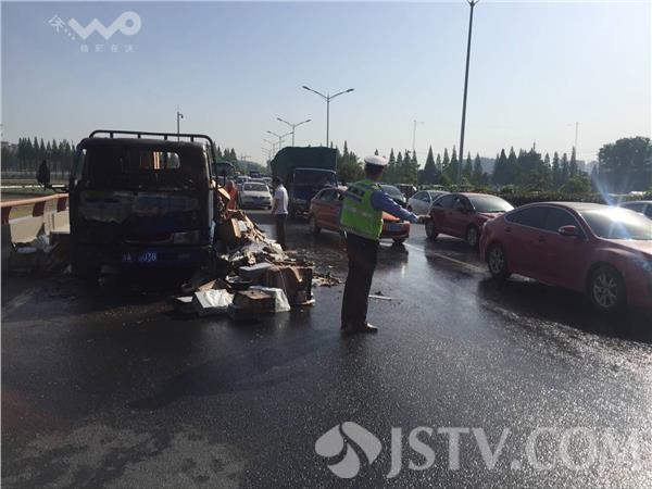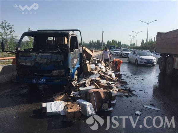今晨(5月4日)7点20分,南京绕城高速二桥往三桥方向,石门坎匝道附近,一辆满载电脑配件的货车突发自燃,火灾发生后,消防队员赶到现场,很快把火扑灭。