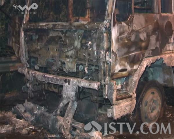 此时这辆厢式货车已经停在路边,消防部门出动5辆消防车参与扑救,因为火势很大,货车的整个车头已经完全烧毁,消防队员及时阻断了火势蔓延,所幸货车上的运输的货物最终抢救了下来。