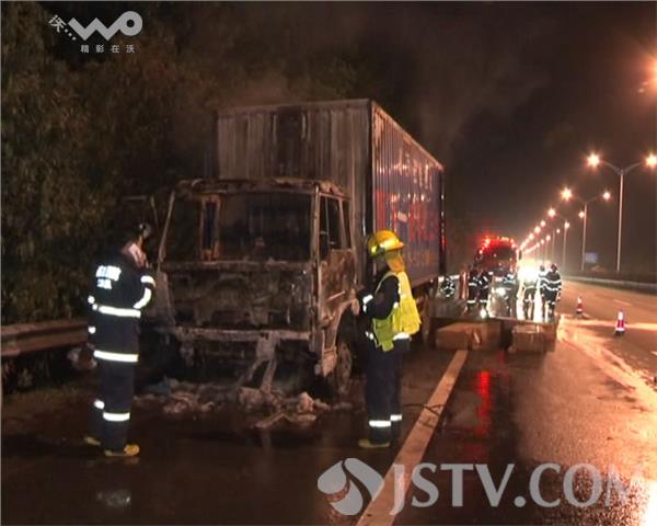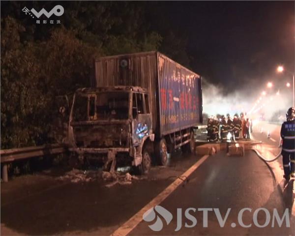 昨晚10点半钟,在绕城公路3桥往2桥方向的玄武大道出口附近,一辆物流公司的厢式货车突然自燃,消防部门立即赶往现场扑救。