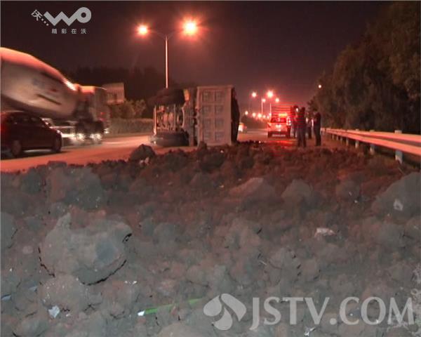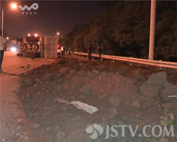 昨晚10点多钟,在南京绕城公路的铁心桥段,两辆渣土车发生相撞后翻车,一名渣土车司机被困,南京三桥交警赶到后对被困人员展开救援。
