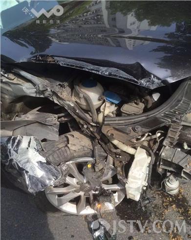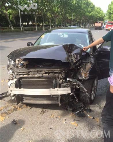 昨天(5月4日)三点半左右,南京市六合区新华路平顶山公园附近发生一起严重车祸,黑色奥迪与一辆白色轿车相撞结果奥迪车甘拜下风,车身损坏严重。现场看汽车前左侧被撞进去一个圆柱形大坑,右侧轮胎稳定轴杆全部报废,前侧的两个大 灯全部撞坏,发动机变形脱落基本上已经报废。