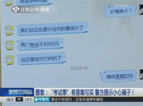 最近,苏州市民杨女士在网上搜索2016年江苏省公务员考试时,一个网页跳出出售考试答案的广告。考试直接关系自己的饭碗,抱着“赌一把”的心态,杨女士加了对方的QQ,并咨询了起来。对方称两门试题的答案共要3000元,还神秘地声称他们的机构是有渠道的。
