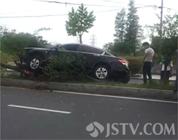 今天(5月6日)下午1点左右,那就六合区园西路宁连公路天桥附近,一辆黑色小轿车驾驶员疑似开车走神,一头冲上路中间绿化隔离带,撞倒一棵直径足有20公分粗的香樟树,致使轿车保险杠损坏、引擎盖变形,庆幸驾驶员没有大碍。