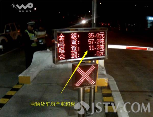 两辆车司机见状,赶紧发动车辆驶进收费站。两辆货车通过收费站时,收费站地磅显示两车严重超载,随后将两车带到停车场复磅,两车皆严重超载。