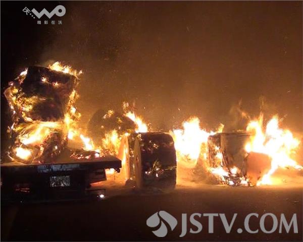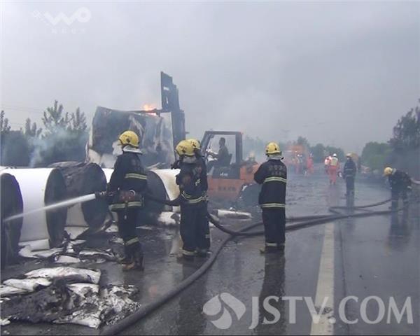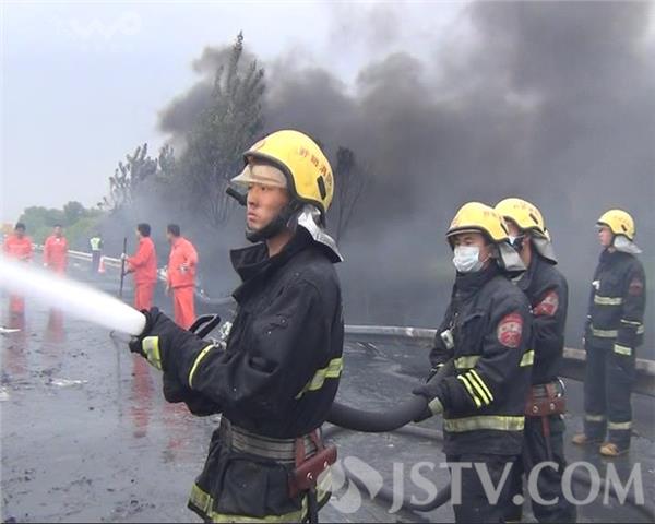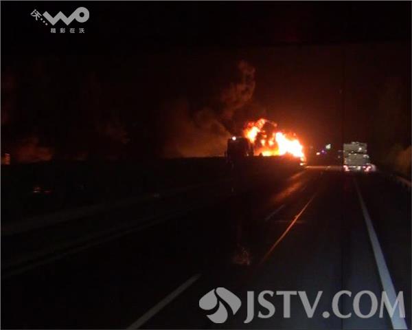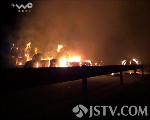 5月7号凌晨00点16分,新扬高速淮安市盱眙县宿迁往南京方向158公里处,发生了一起连环追尾车祸,事故造成一辆载有30余吨液化苯槽罐车泄漏燃烧。盱眙县消防大队立即出动3辆消防车15名消防官兵奔赴现场进行处置。