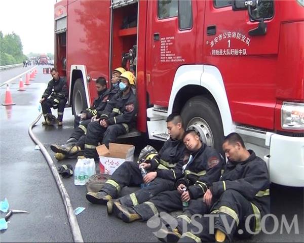 这时,天色渐渐亮了,消防战士忍受着饥寒,分成两批轮流坚守在最前线,与火魔作斗争。县公安局局长、副县长杨忠以及交警队领导、消防大队教导员均来到现场指挥战斗。卷纸火势在慢慢变小,流淌火也被扑灭。一辆载满砂石的货车到达火灾现场,消防战士联合高速救援队准备实施最后一番总攻,到上午9时多,终于将大火扑灭。