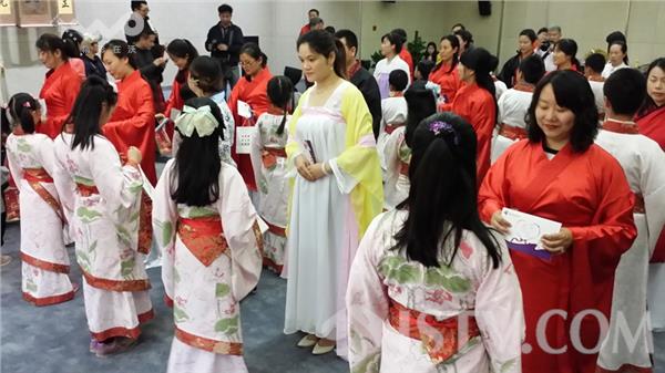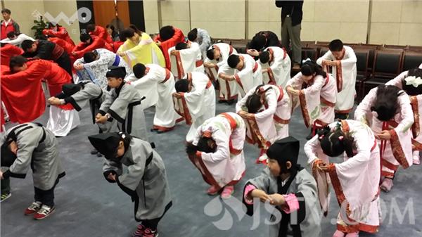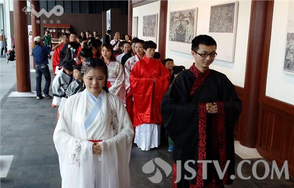 荔枝新闻网友在现场看到,来自秦淮区的20个家庭母子、母女相聚在一起,先后参观了大报恩寺遗址公园,聆听了解说员关于大报恩寺来历的讲解。随后,20对母子、母女穿上汉服学习了汉代礼仪。为感谢母亲的养育之恩,孩子们为母亲祈祷、跪拜。母亲则为孩子们亲点朱砂,希望子女们好好学习天天向上,早日成材。