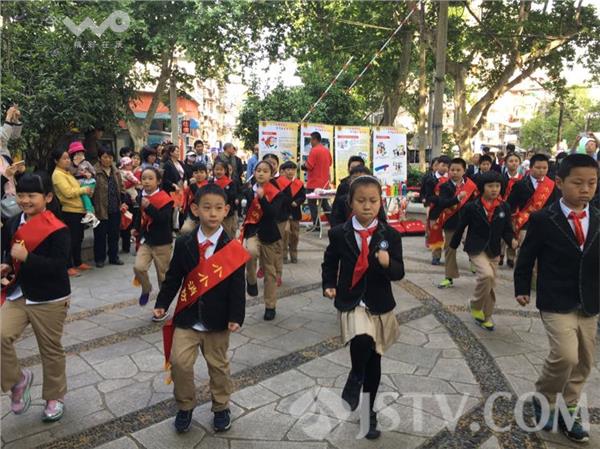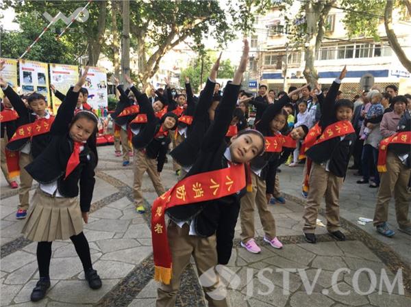 由南京力学小学学生组成的隐患巡查小队,一共有5队,每队6人,他们在南京仙霞路社区的居民区里开始排查火灾隐患。走过一排门面房,小巡查员们抬头发现,商户把洗好的衣服都晾晒在电线上,这可不行。在小巡查员的劝导下,商户立即把晾晒的衣服取了下来。