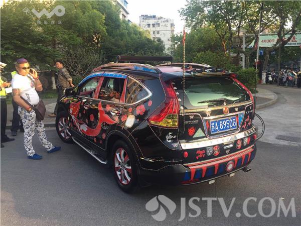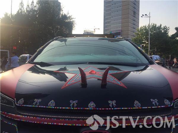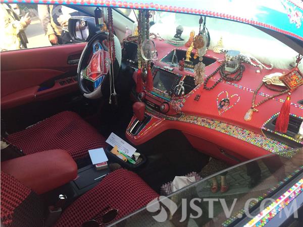 2016年5月10日晚高峰,南京一大队民警于北京东路安人街路口查扣一辆涉嫌改装车辆。该车车身贴满了彩钻和各色贴纸,刹车灯、轮毂等部位进行了更改,内饰挂满了各式的佛珠、佛像摆件,车尾部分还另外加装了led灯杆,这辆印度“宝莱坞”风改装车辆,行驶在街头造型十分抢眼。