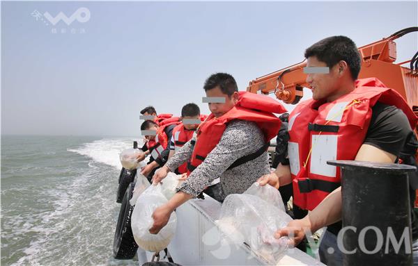 增殖放流前,渔业专家首先对准备放流的对虾苗进行了开包查验、清点。专家在等待放流的虾苗中随机抽取部分进行了清点,确定虾苗数量。之后,专家随机选取了部分虾苗,对其长度进行了仔细测量,保证增殖放流的虾苗规格符合要求。专家将就检验过程形成书面检测报告。之后,渔业专家详细讲解了增殖放流的程序、要领及注意事项。船只到达海州湾海洋牧场示范区后,参加活动的领导及工作人员、各被告人在渔业专家的指导下按照要求将虾苗放入大海,晶莹剔透的对虾苗踏着海浪游向了远方。