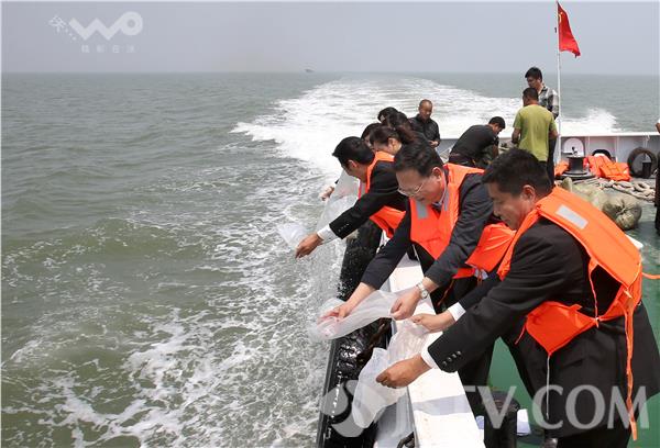5 月11日上午,江苏省连云港市中级法院组织连云区法院、赣榆区海洋与渔业局并邀请渔业指导专家共同执行被告人李某等六人非法捕捞水产品案的判决,现场实施增殖放流,修复海洋环境,当日共计放流虾苗1365万尾。