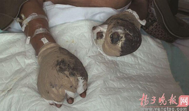 徐州仁慈医院对赵师傅伤情检查发现,他的身体多处二度烧伤,烧伤面积达到18%。经治疗,目前患者伤情稳定。