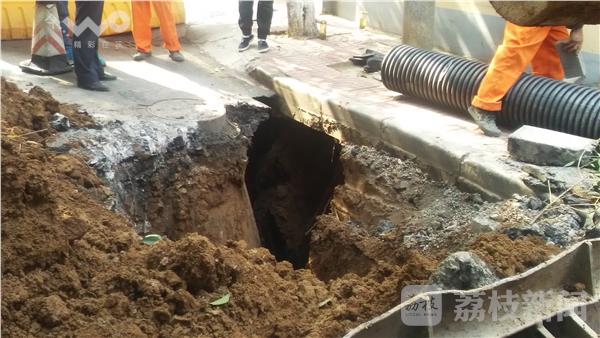 5月14日中午12点,在南京市宁海路附近武夷路收汽车停车费的范师傅发现,武夷路10号附近道路上出现了裂缝,紧接着,路面出现了一个洞,路面的沥青直往下落。意识到道路塌陷了,范师傅赶紧到路口封闭了交通,并赶紧联系停在塌陷处车辆的车主把车开走。与此同时,附近的居民拨打了电话报警。10来分钟后,路面塌陷越来越大,达到了两、三个平方米。接警后,市政部门派人来到现场处置。经检查分析,导致路面塌陷的原因是地下2米多深的排水管破裂了。水渗透外溢,导致附近泥土被冲刷,最终路面塌陷。南京市政部门立即安排施工队前来处置,更换水管。预计到今天傍晚可修好地下水管。届时,路面交通也将恢复。荔枝新闻记者提醒路过此处的市民绕道行驶。