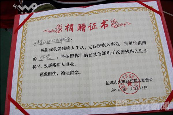 活动在盐城市大丰区特殊学校孩子们的歌舞中拉开序幕,盐城市大丰区特殊学校为捐赠组织发出了捐赠证书,及校外铺导员证书。活动现场并且安排小朋友们为前来的嘉宾系上红领巾,让现场参加活动的人员感触万分。